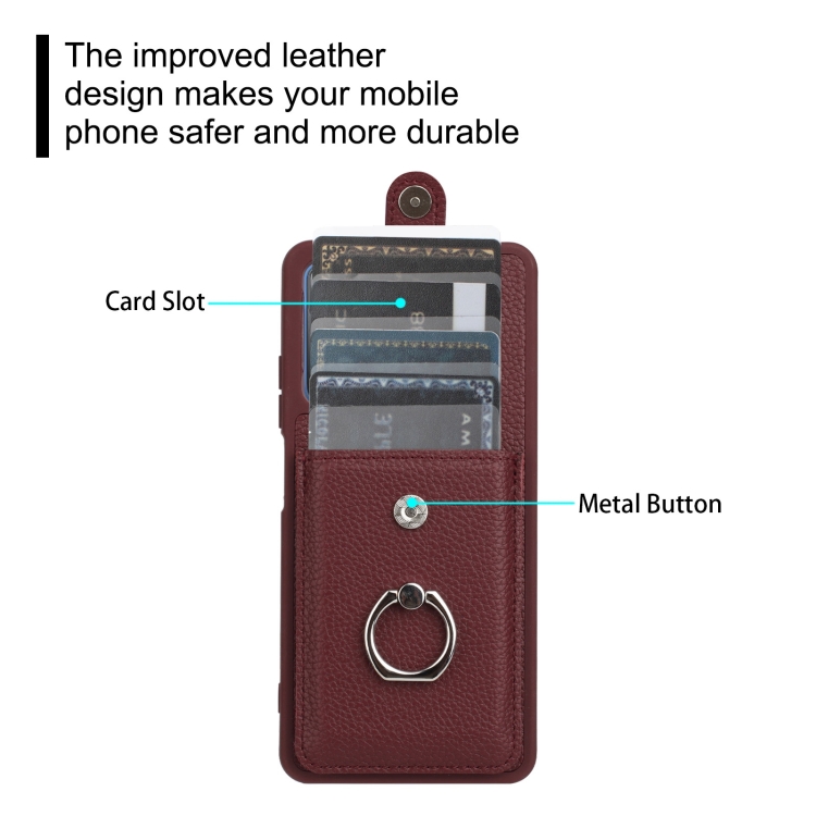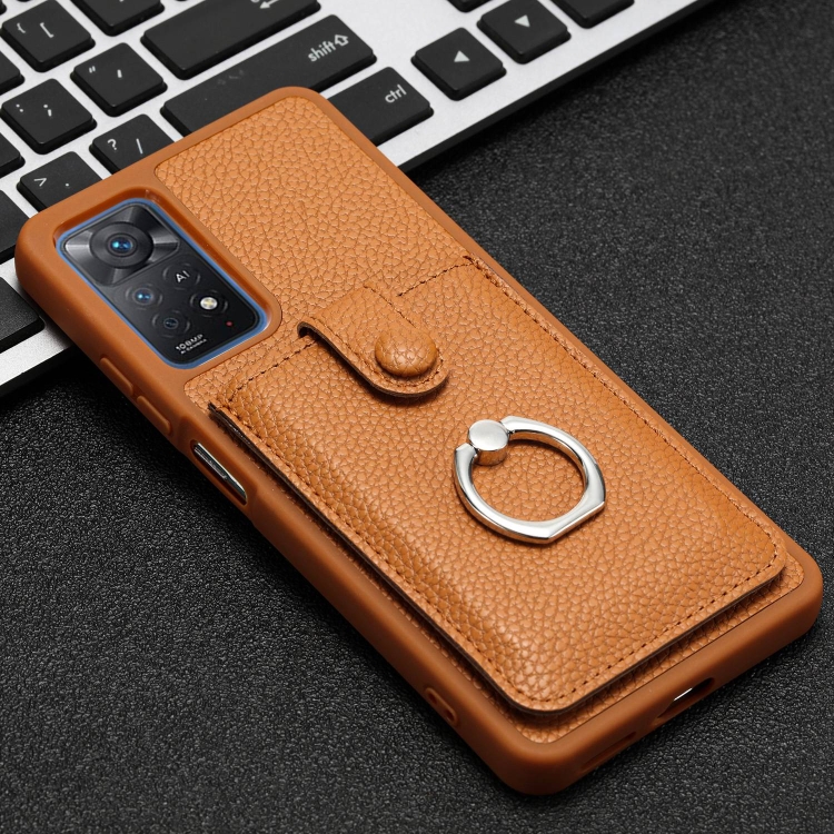 Funda para Teléfono con Diseño de Textura de Lichi para Redmi Note 11 Pro 4G, con Soporte para Anillo y Diseño de Tarjeta (Marrón)