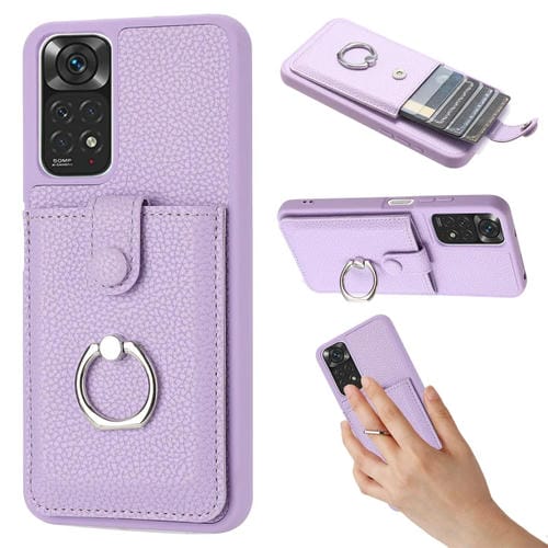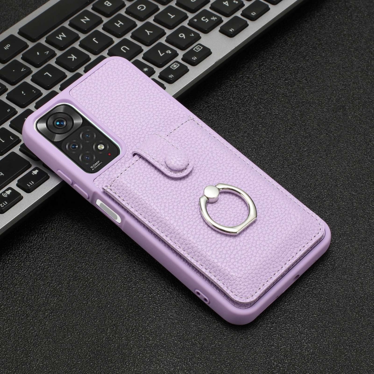 Funda para Teléfono con Diseño de Textura de Lichi para Redmi Note 11S, con Soporte para Anillo y Diseño de Tarjeta (Morado)