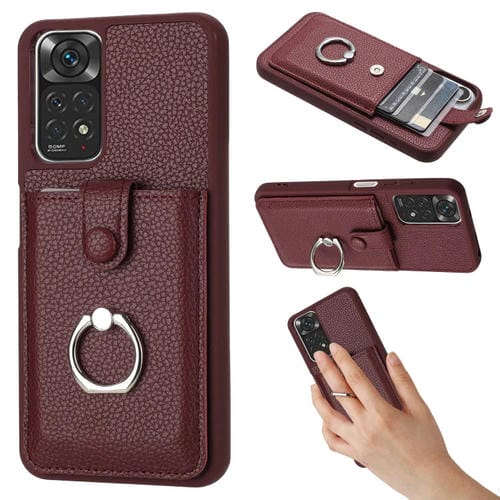Funda para Teléfono con Diseño de Textura de Lichi para Redmi Note 11S, con Soporte para Anillo y Diseño de Tarjeta (Rojo Vino)