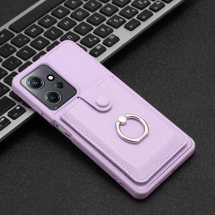 Funda para Teléfono con Diseño de Textura de Lichi y Anillo para Redmi Note 12 4G (Morado)