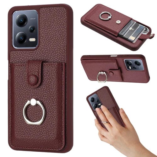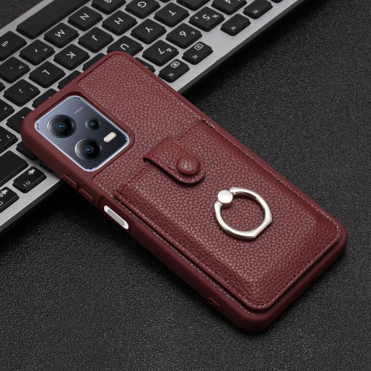 Funda para Teléfono con Diseño de Textura de Lichi y TaRJetero con Anillo para Redmi Note 12 5G (Rojo Vino)
