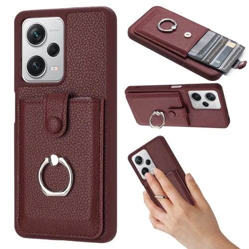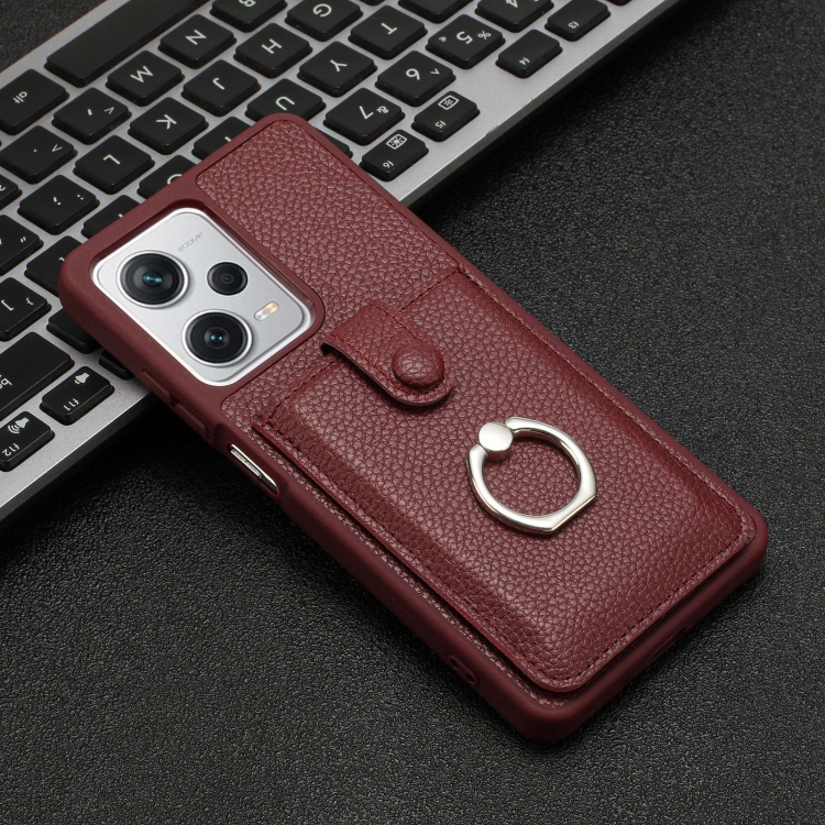 Funda para Teléfono con Diseño de Textura de Lichi y TaRJetero con Anillo para Redmi Note 12 Pro 5G (Rojo Vino)