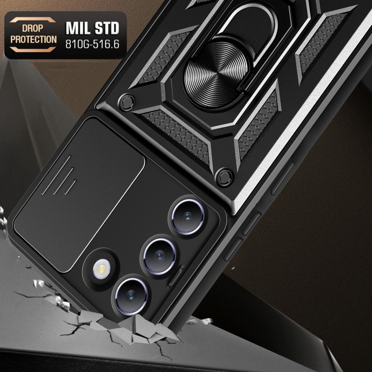 Funda para Teléfono con Diseño de TPU y PC con Cubierta Deslizante para Cámara para Vivo V30 Lite 5G India/Y100 Idn (Dorada)