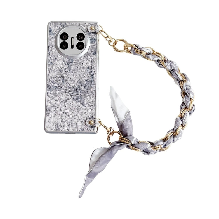 Funda para Teléfono Huawei Mate X3/X5 Bordado Diy Cobertura Total con Bufanda y Pulsera (Gris)