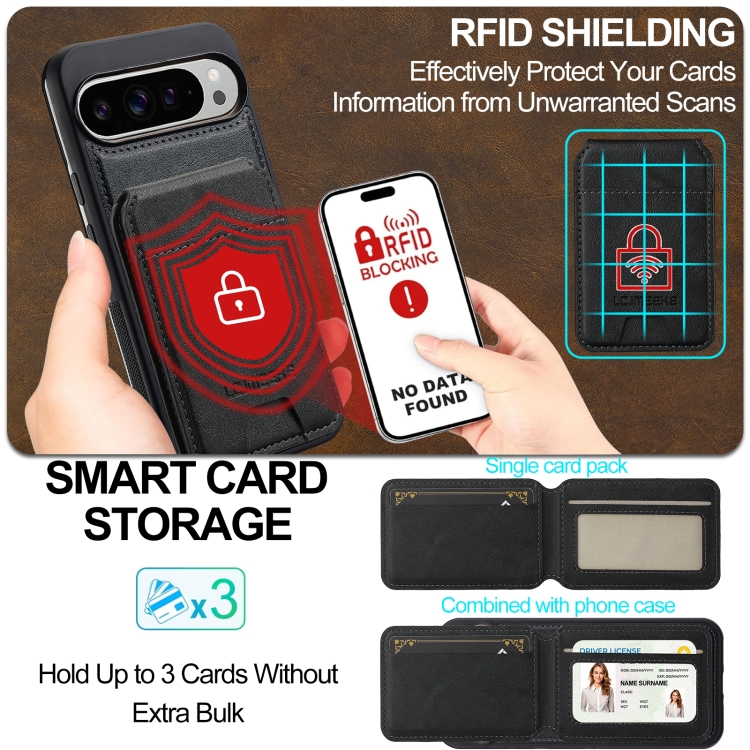 Funda para Teléfono LC.Imeeke L3 Series con Funda Tarjeta RFID Desmontable Magsafe para Google Pixel 9 Pro XL (Negra)