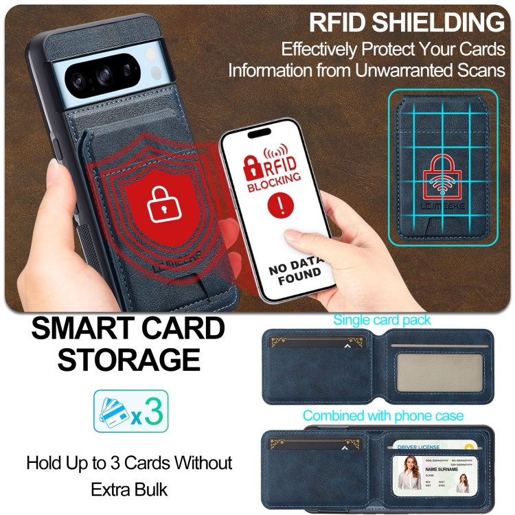 Funda para Teléfono Lc.Imeeke L3 Series con Tarjeta Rfid Desmontable y Magsafe para Google Pixel 8 Pro (Azul)