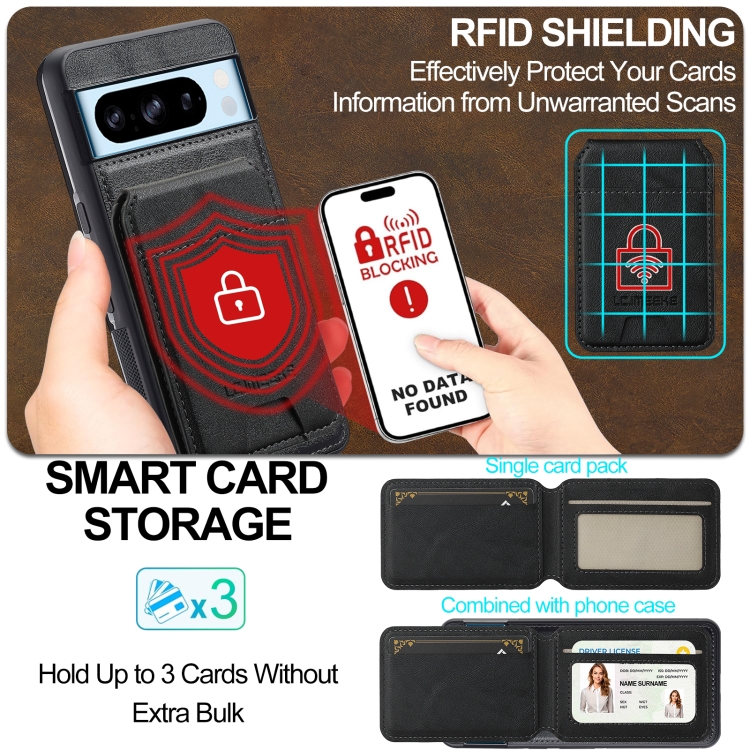 Funda para Teléfono Lc.Imeeke L3 Series con Tarjeta Rfid Desmontable y Magsafe para Google Pixel 8 Pro (Negra)