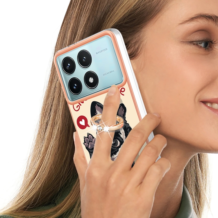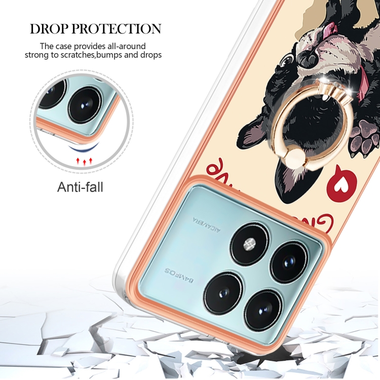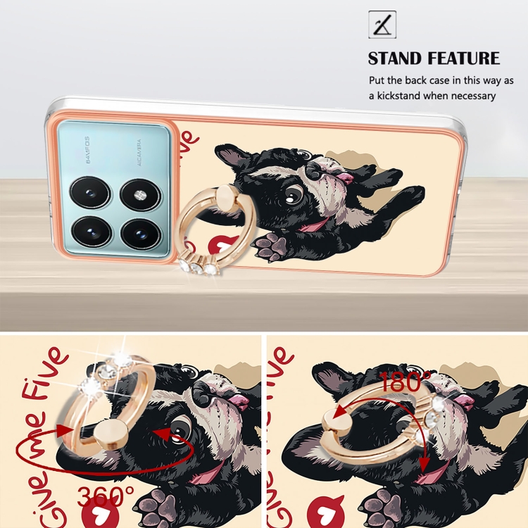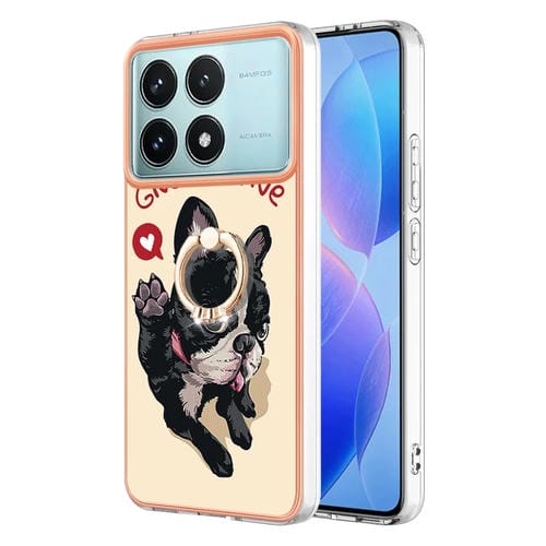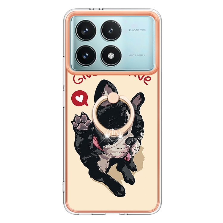 Funda para Teléfono con Galvanoplastia Imd de Doble Cara con Soporte para Anillo para Xiaomi Poco F6 Pro 5G (Perro de la Suerte)