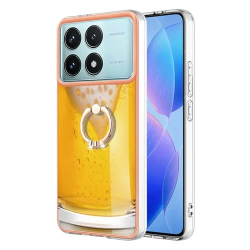 Funda para Teléfono con Galvanoplastia Imd de Doble Cara para Xiaomi Poco F6 Pro 5G con Soporte para Anillo (Cerveza de Barril)