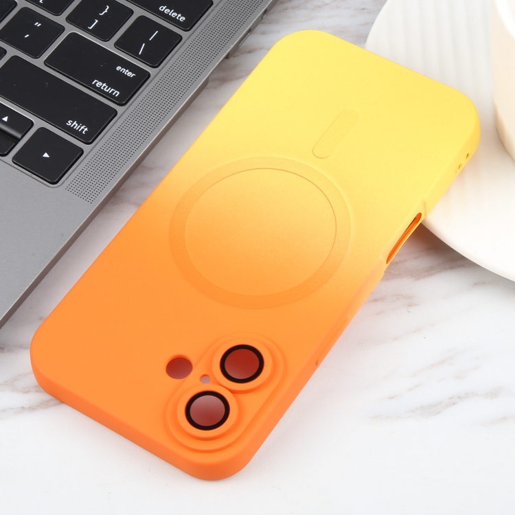Funda para Teléfono Silicona Líquida TPU Magsafe iPhone 16 Plus (Naranja y Amarillo)