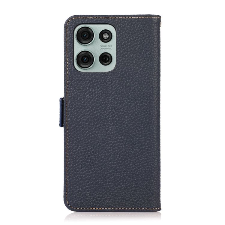Funda para Teléfono Khazneh Cuero Genuino con Imán Lateral Rfid para Motorola Moto G75 5G (Azul)