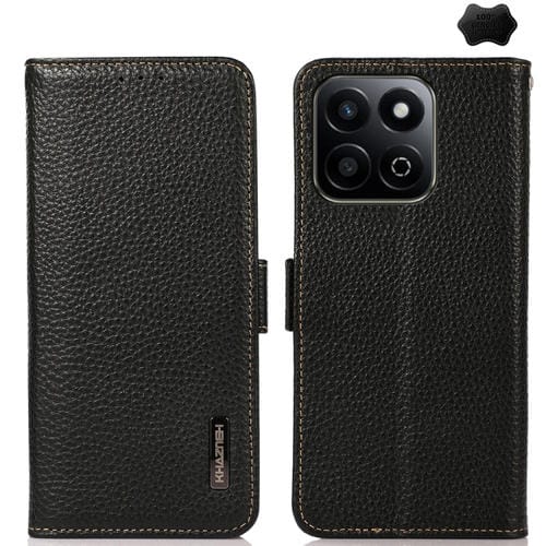 Funda para Teléfono Khazneh Cuero Genuino Lichi con Imán Lateral y RFID para Honor 200 Smart/Play 60 Plus (Negro)