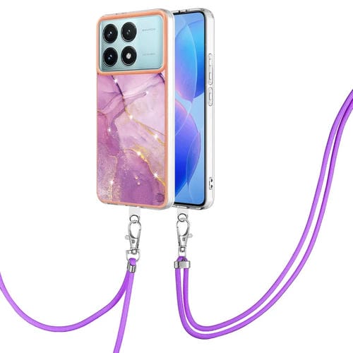 Funda para Teléfono con Imd de Doble Cara con Galvanoplastia de Mármol para Xiaomi Poco F6 Pro 5G con Cordón (Púrpura 001)