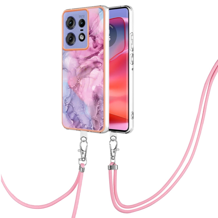 Funda para Teléfono Motorola Edge 50 Pro con Imd Doble Cara y Revestimiento Mármol Galvanizado con Cordón (Rosa)