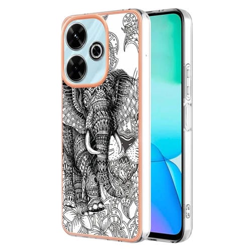Funda para Teléfono con Imd de Doble Cara de Mármol Galvanizado para Redmi 13 4G (Elefante Tótem)