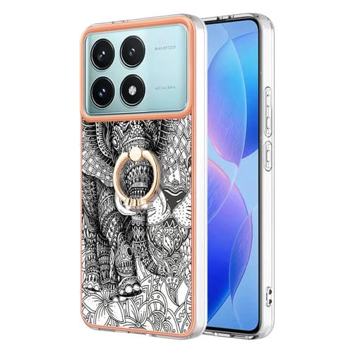 Funda para Teléfono con Imd de Doble Cara Galvanizada con Soporte para Anillo para Xiaomi Poco F6 Pro 5G (Elefante Tótem)