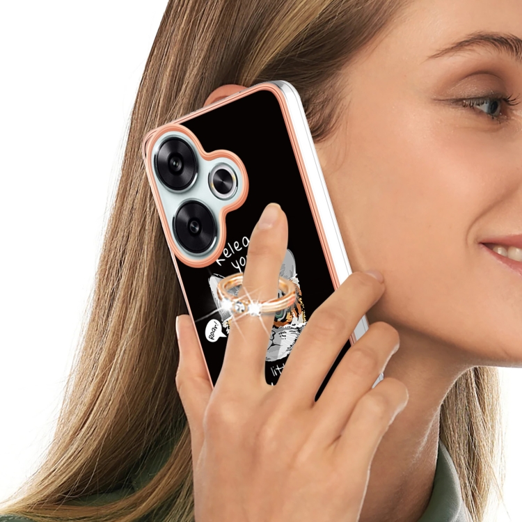 Funda para Teléfono con Imd de Doble Cara Galvanizada para Xiaomi Poco F6 5G con Soporte para Anillo (Crecimiento Natural)