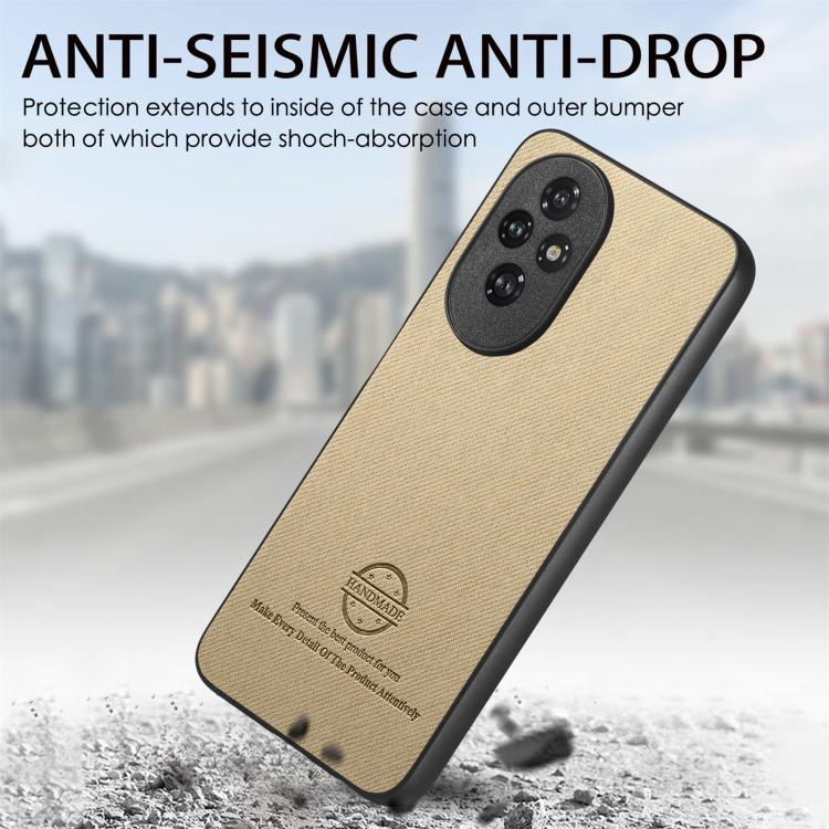 Funda para Teléfono Honor 200 Pro con Parte Trasera de Piel y Tejido de Sarga (Caqui)