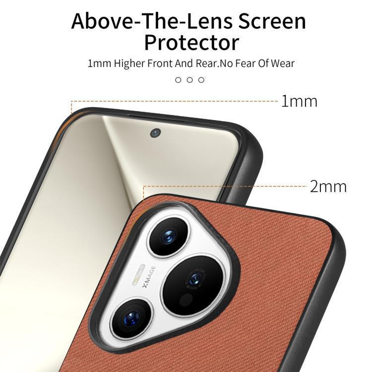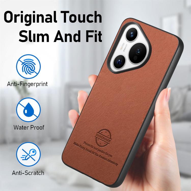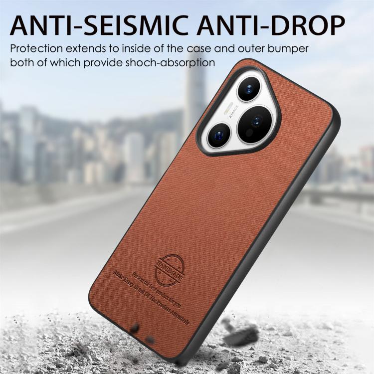 Funda para Teléfono Huawei Pura 70 Pro+ con Parte Trasera de Piel y Tejido de Sarga (Marrón)