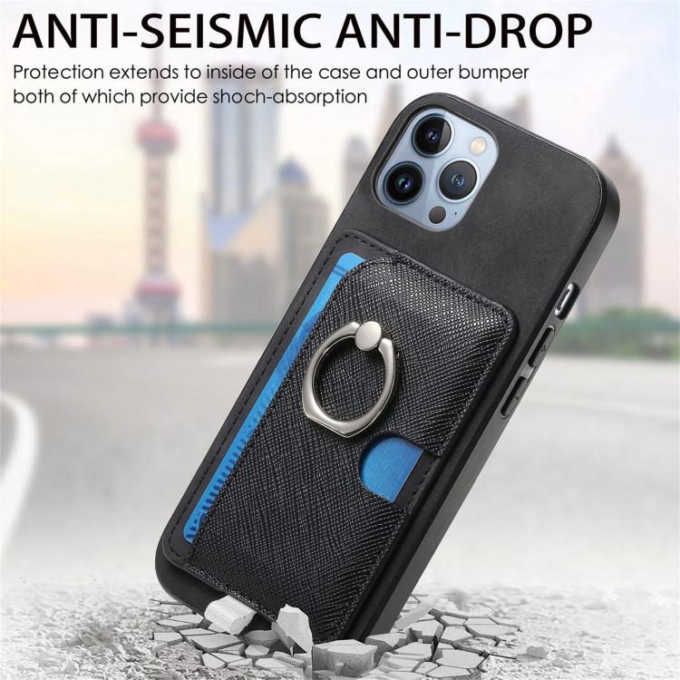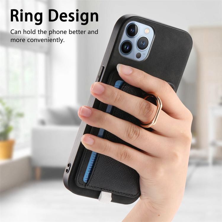 Funda para Teléfono iPhone 12 Pro Max con Ranuras para Tarjetas y Anillo de Cuero (Negro)