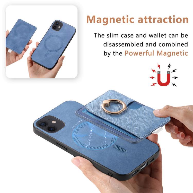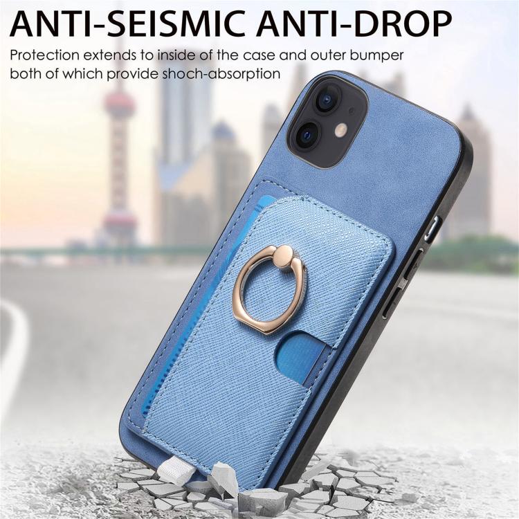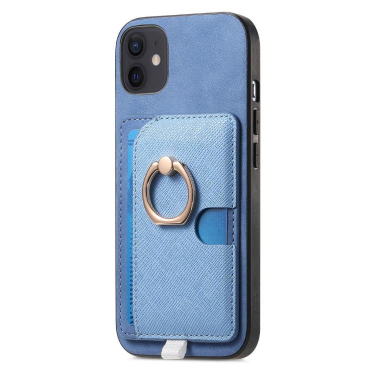 Funda para Teléfono iPhone 12/12 Pro Ranuras Tarjetas Anillo Cuero Retro Cruzado (Azul)