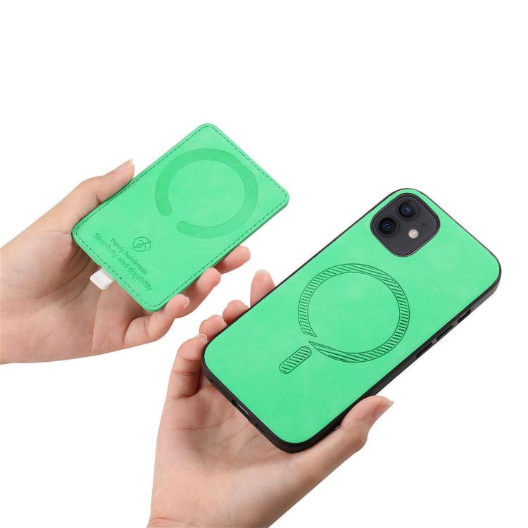 Funda para Teléfono iPhone 12/12 Pro con Ranuras para Tarjetas y Anillo de Cuero Estilo Retro Cruzado (Verde)