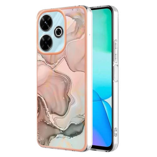 Funda para Teléfono con Revestimiento Electrochapado de Mármol de Doble Cara Imd para Redmi 13 4G (Oro Rosa 015)