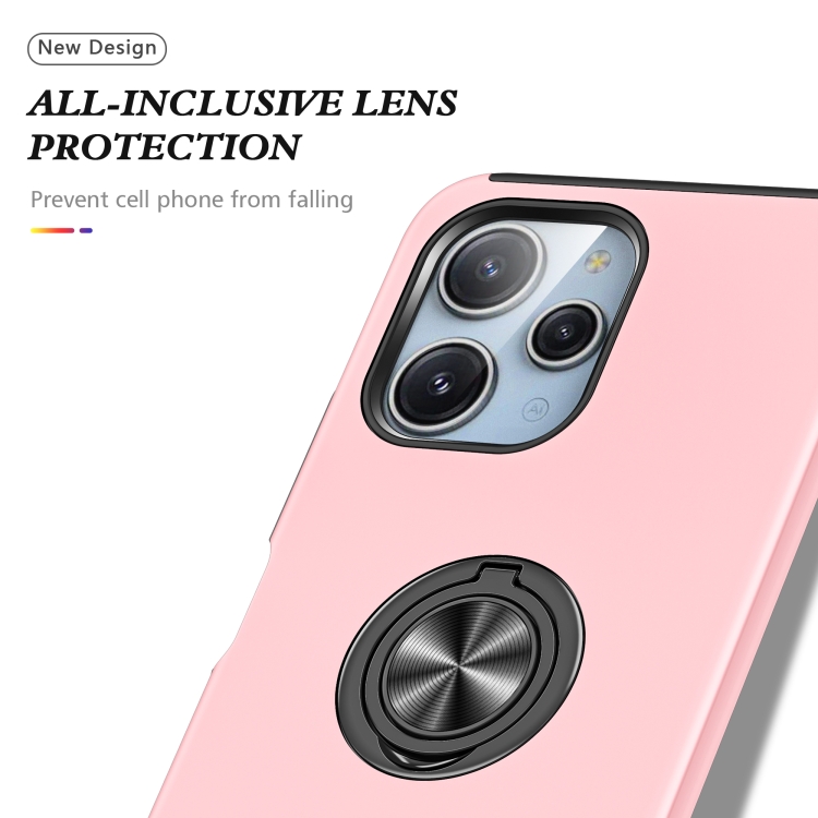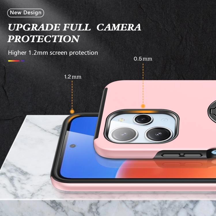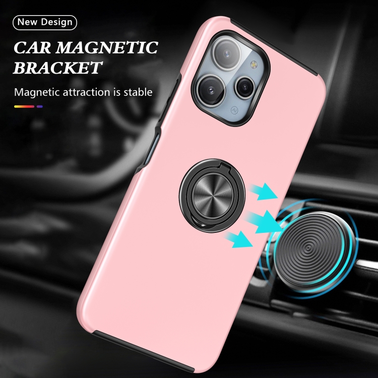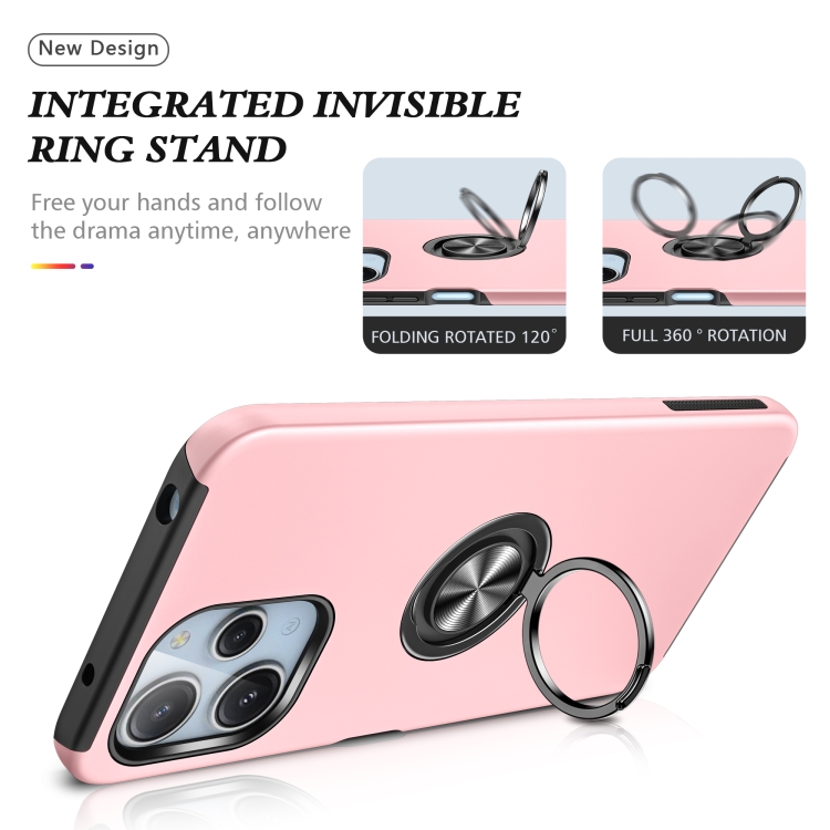 Funda para Teléfono con Soporte de Anillo Magnético Híbrido de TPU para PC Redmi 12 4G (Oro Rosa)