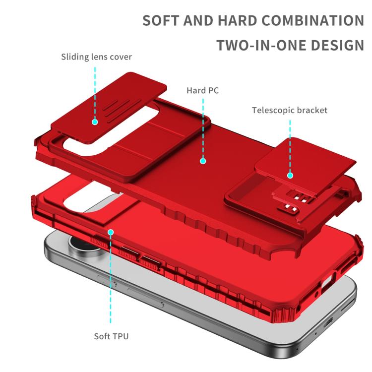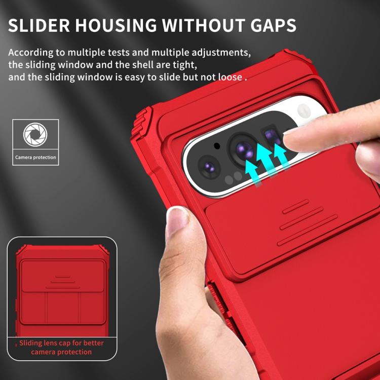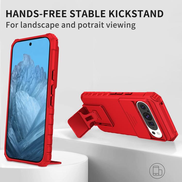 Funda para Teléfono con Soporte Estereoscópico Deslizante Camshield Google Pixel 9 Pro (Rojo)
