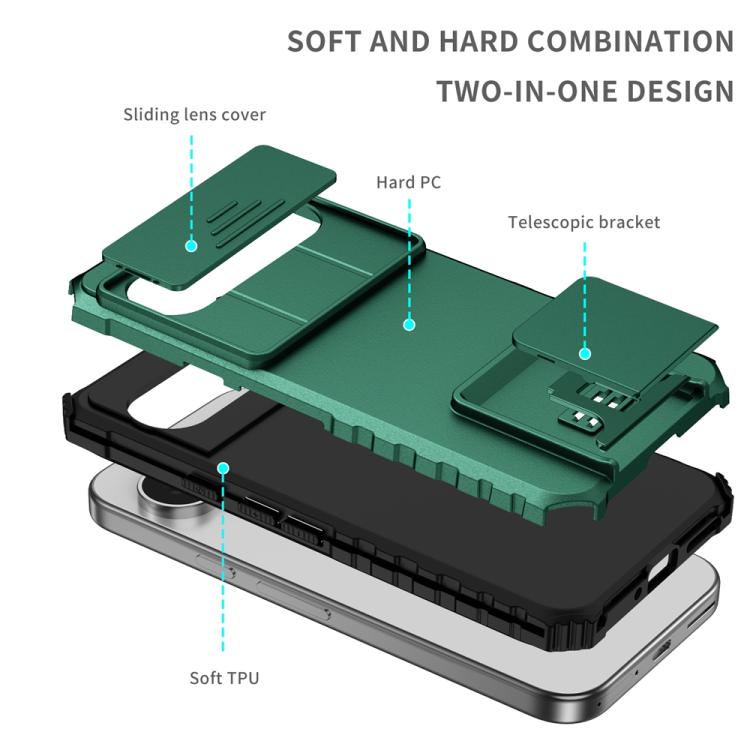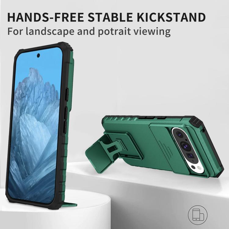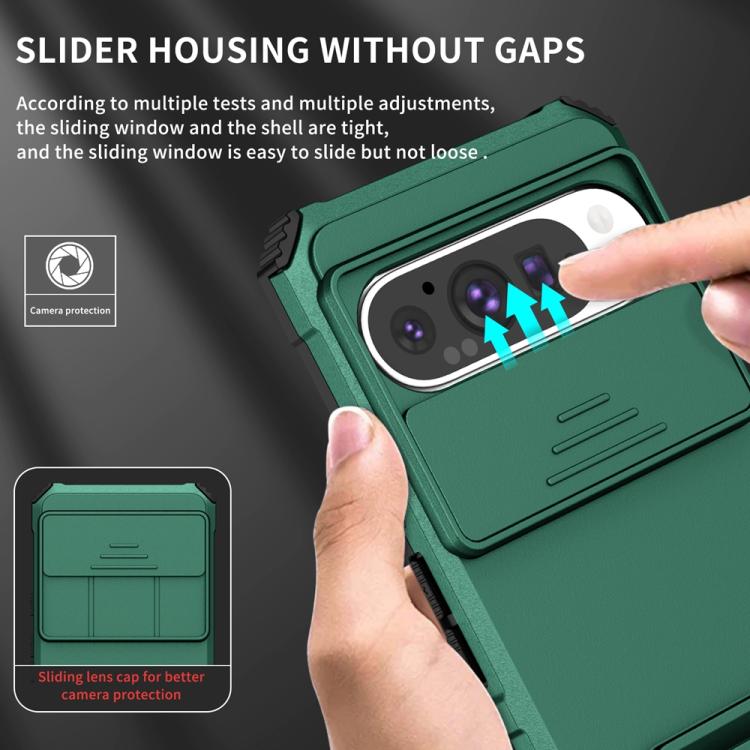 Funda para Teléfono Google Pixel 9 Pro con Soporte Estereoscópico Deslizante Camshield (Verde)