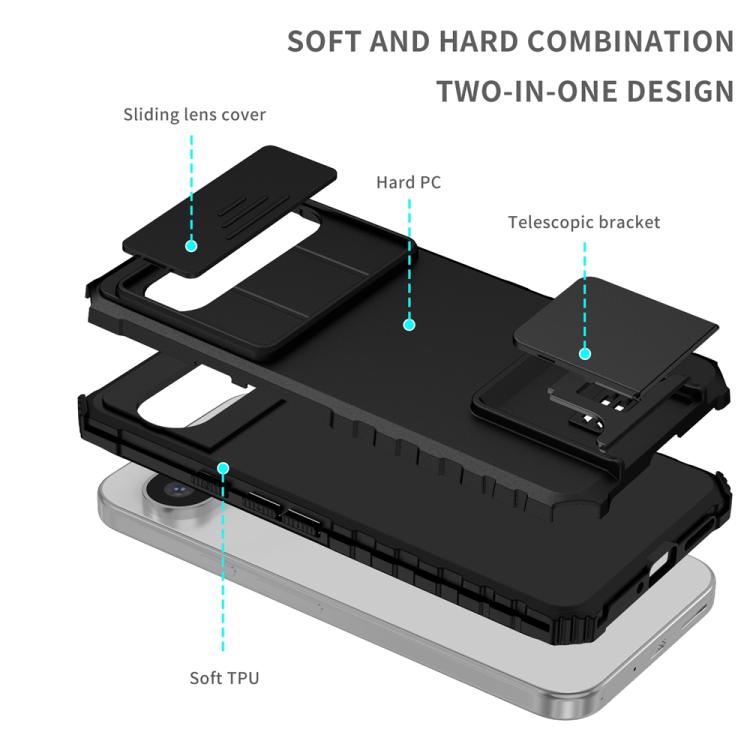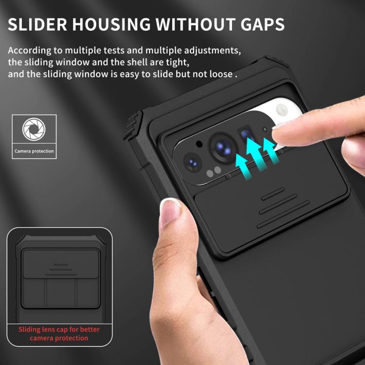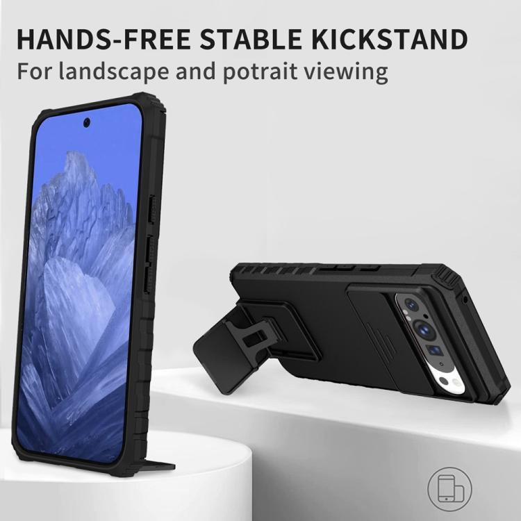 Funda para Teléfono con Soporte Estereoscópico Deslizante Camshield para Google Pixel 9 Pro XL (Negra)