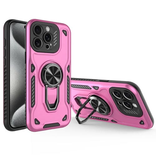 Funda para Teléfono iPhone 15 Pro Soporte Giratorio Metal TPU PC (Rosa y Morado)