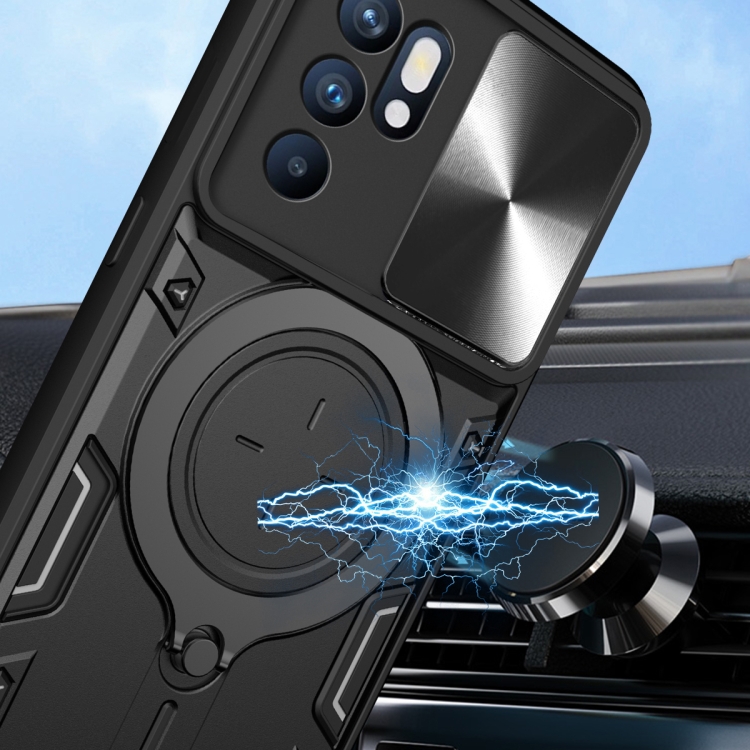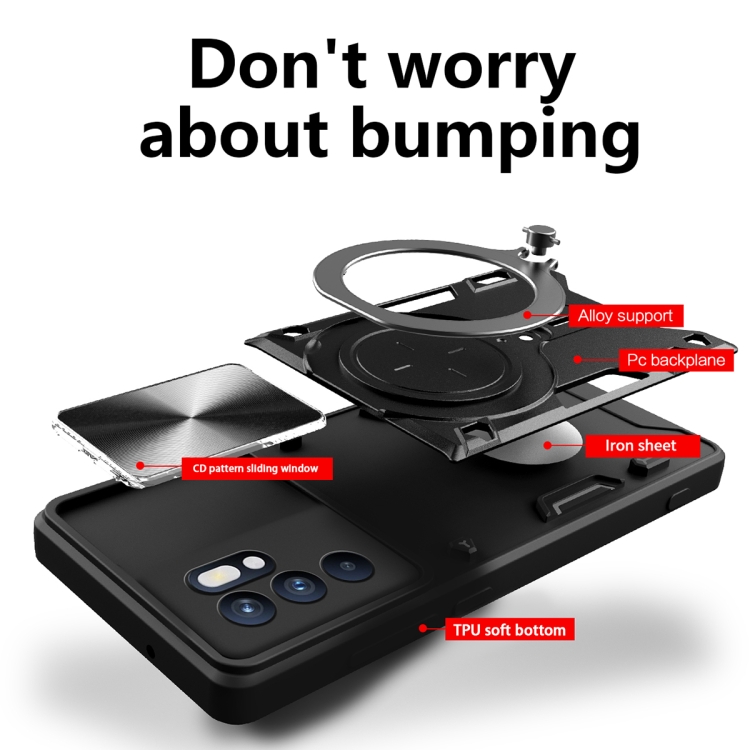 Funda para Teléfono con Soporte Magnético Deslizante con Textura de Cd para Oppo Reno 6 4G (Rojo)