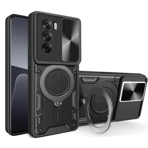Funda para Teléfono con Soporte Magnético Deslizante con Textura de Cd para Oppo Reno12 5G (Negro)