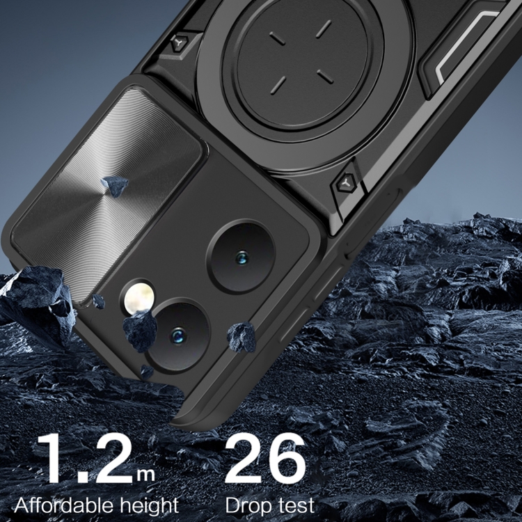 Funda para Teléfono con Soporte Magnético Deslizante con Textura de Cd para Vivo Y03/Y18/Y18E 4G (Negro)