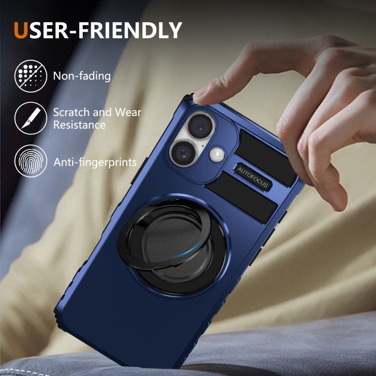 Funda para Teléfono iPhone 16 Plus Soporte Magnético Giratorio (Azul Real)