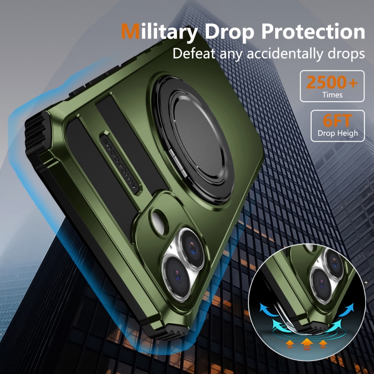 Funda para teléfono iPhone 16 Plus soporte magnético giratorio (Verde Oscuro)
