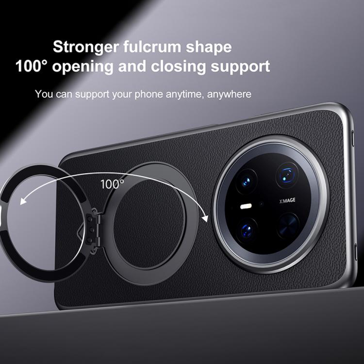 Funda para Teléfono Huawei Mate 70 con Soporte Magnético Magsafe de Cuero (Negro)