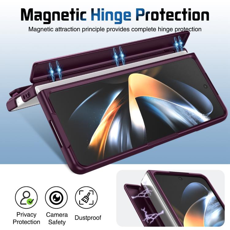 Funda para teléfono con soporte para lente integrada y correa para Samsung Galaxy Z Fold4 (rojo vino)