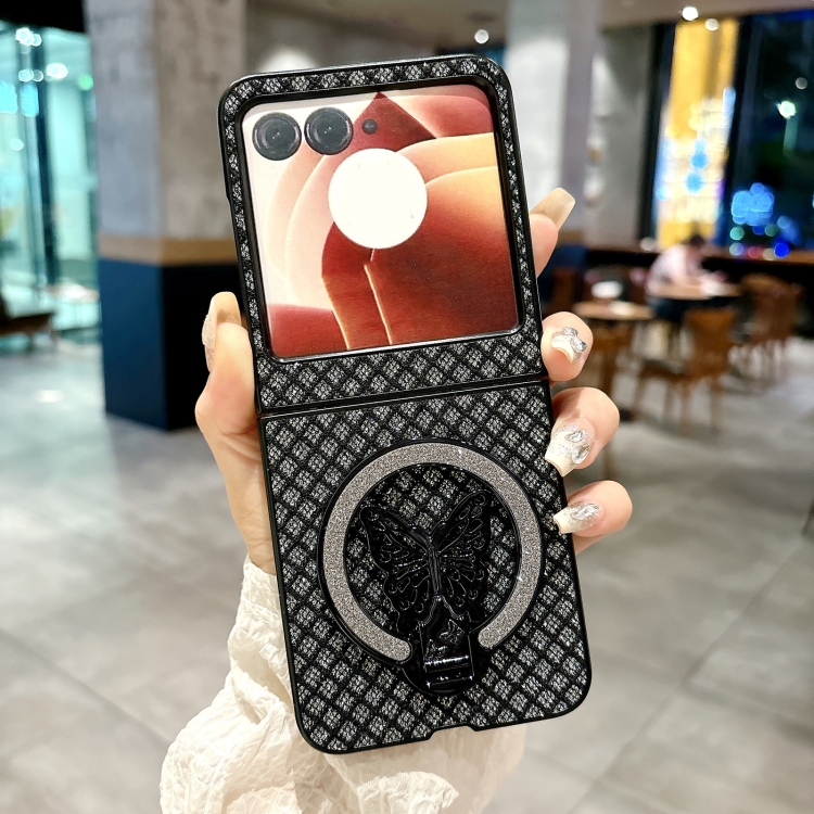 Funda para Teléfono Motorola Razr 50 con Soporte PC y Diseño de Rombos y Diamantes (Negra)
