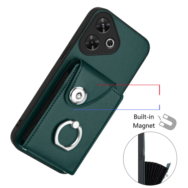 Funda para Teléfono con Soporte para Tarjeta de Identificación y Anillo para Redmi 13 4G/5G (Verde)