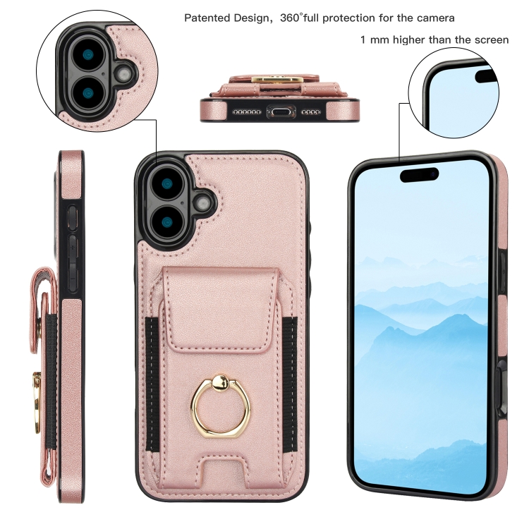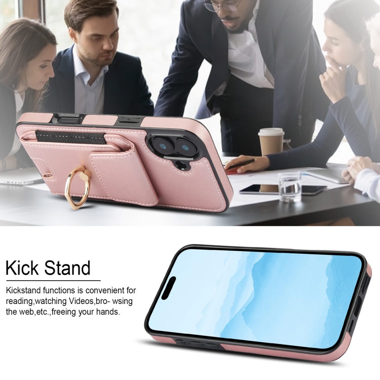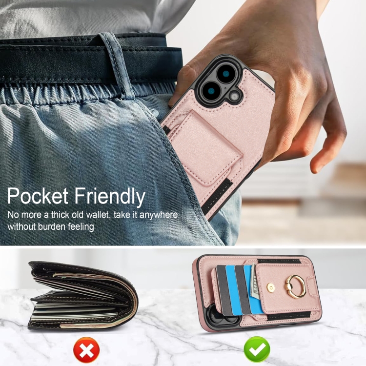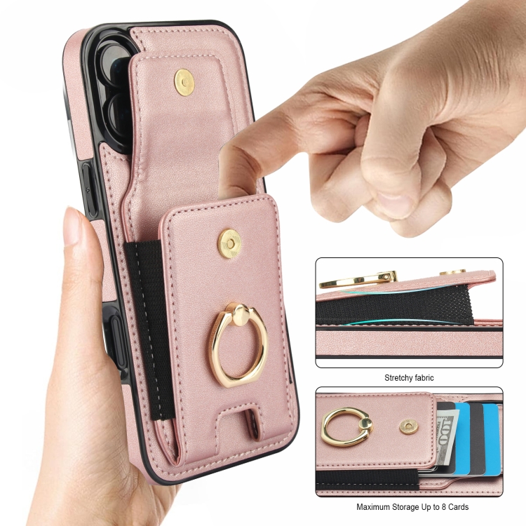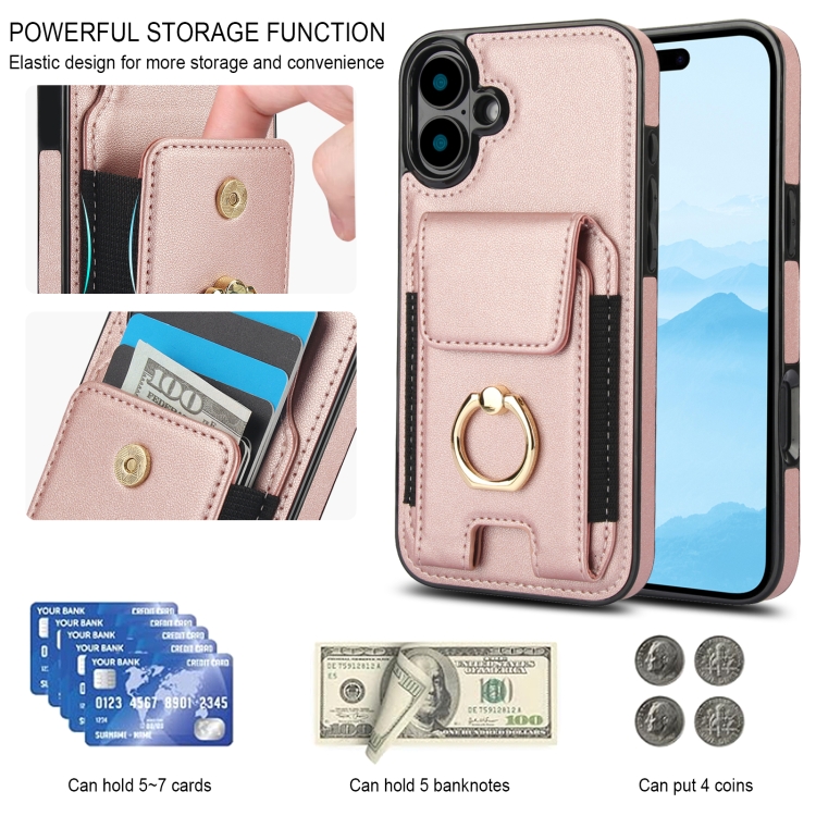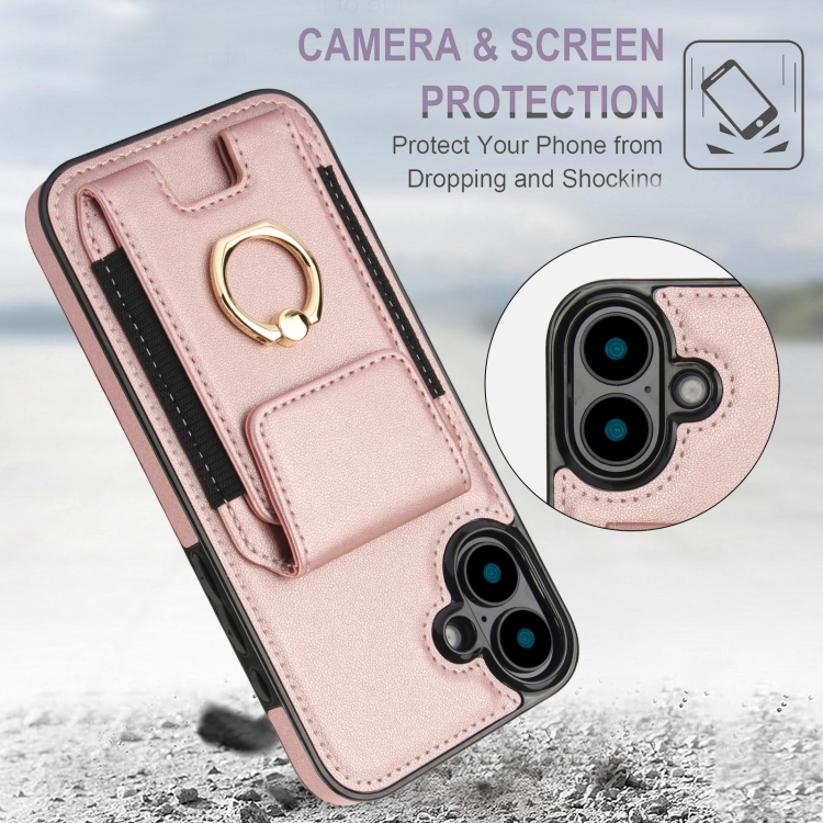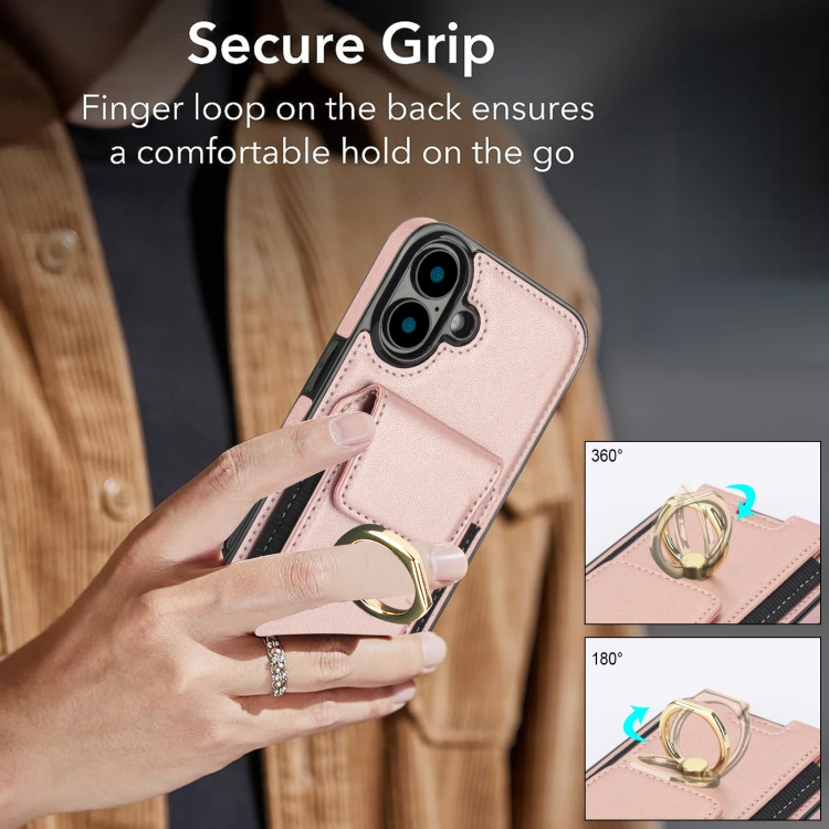 Funda para Teléfono iPhone 16 Plus Soporte Tarjetas Anillo Elástico (Oro Rosa)