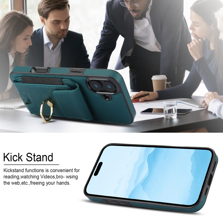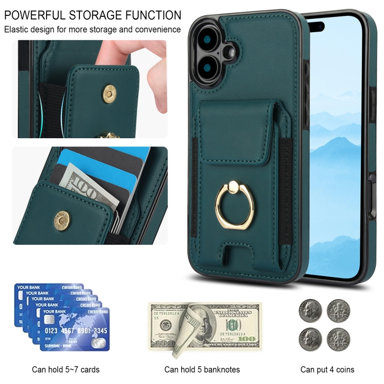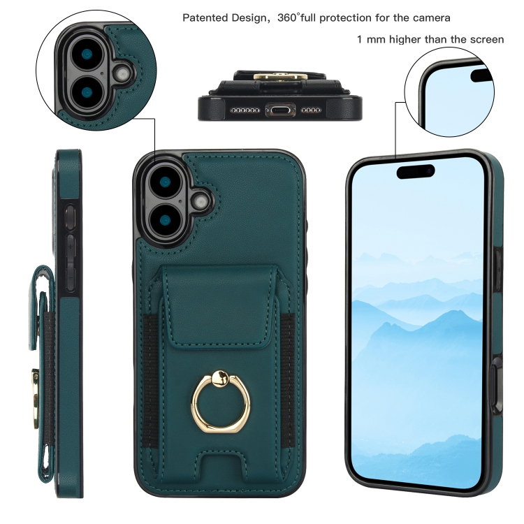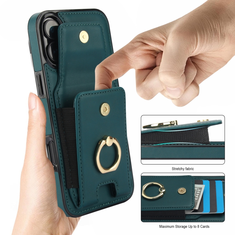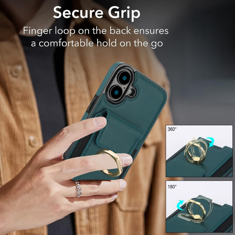Funda para Teléfono iPhone 16 Plus Soporte Tarjetas Anillo Elástico (Verde Oscuro)