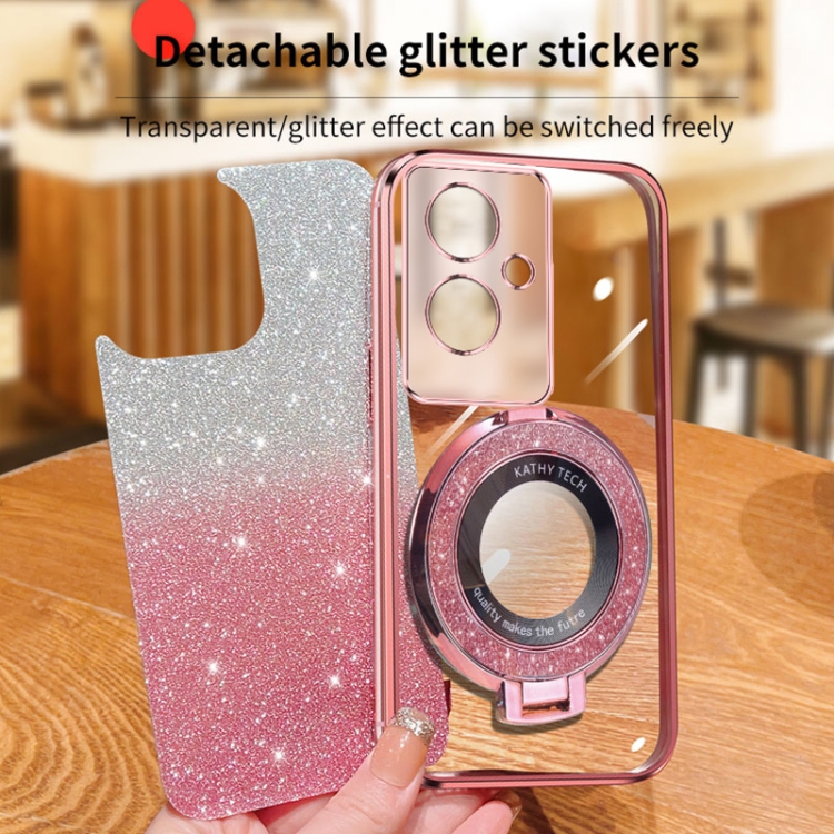 Funda para Teléfono con Soporte Redondo de TPU con Purpurina Degradada Plateada para Oppo A2 5G/A79 (Rosa)