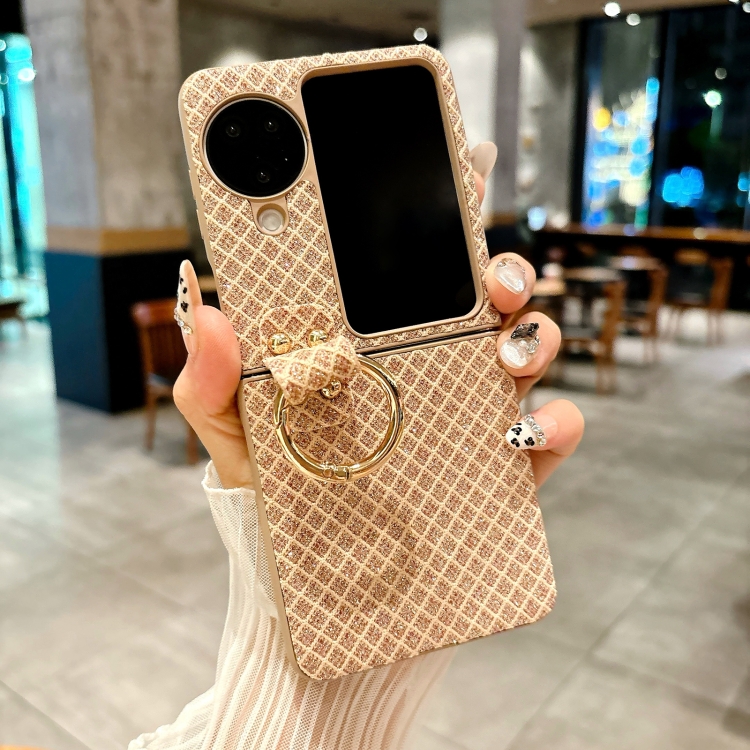 Funda para Teléfono con Tapa de PC con Diamantes Brillantes y Rombos para Oppo Find N3 (Dorada)