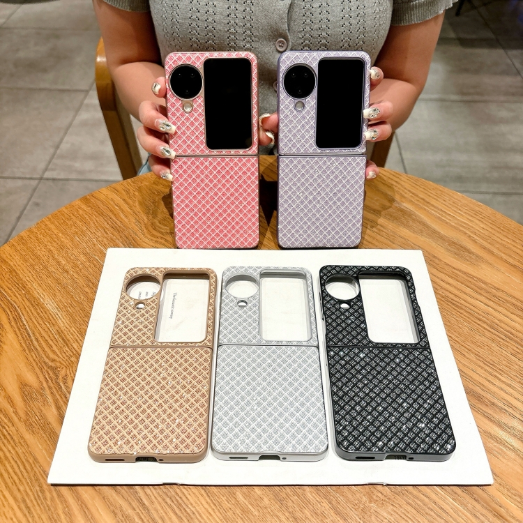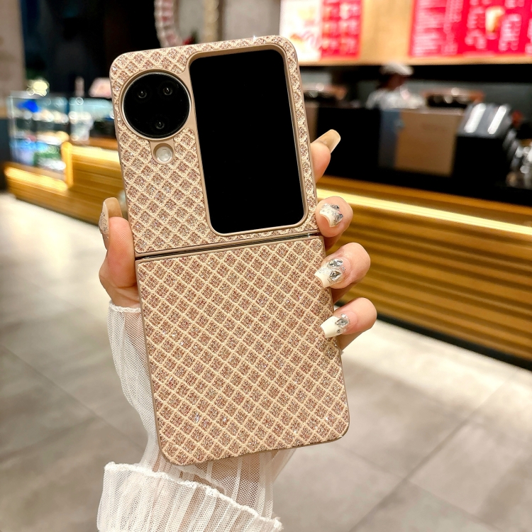 Funda para Teléfono con Tapa de PC con Rombos y Diamantes Brillantes para Oppo Find N3 (Dorada)