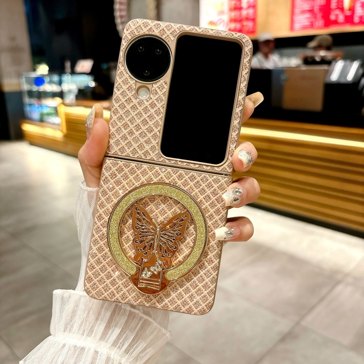 Funda para Teléfono con Tapa de PC con Rombos y Diamantes Brillantes para Oppo Find N3 (Dorada)