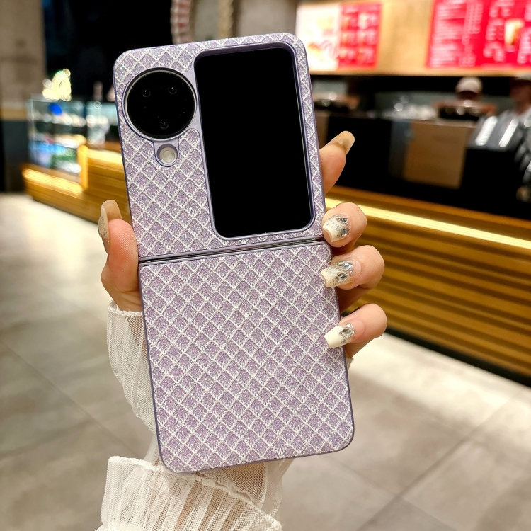 Funda para Teléfono con Tapa de PC con Rombos y Diamantes Brillantes para Oppo Find N3 (Morado)