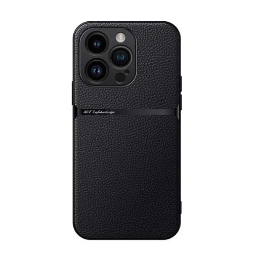 Funda para Teléfono iPhone 15 Pro Piel de Lichi Tapa Magnética a Prueba de Golpes (Negra)