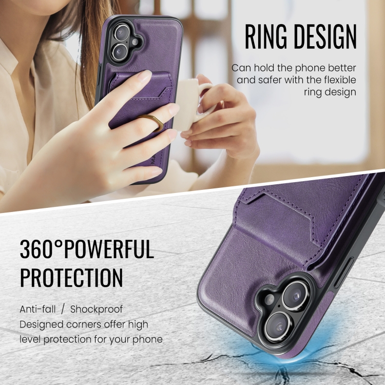 Funda para Teléfono Dg.Ming K1 con Tapa Trasera Rfid Desmontable y Billetera Magsafe para iPhone 16 (Morado)